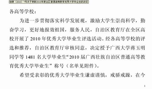 我院32名应届毕业生喜获“2010届广西壮族自治区普通高等教育优秀大学毕业生”荣誉表彰