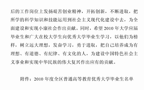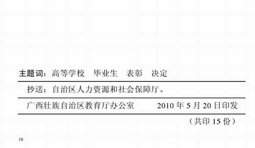 近日,自治区教育厅下文(桂教【2010】7号)对2010年全区普通高等教育优秀大学毕业生进行表彰,我院32名应届毕业生喜获“2010届广西壮族自治区普通高等教育优秀大学毕业生”荣誉称号,获得表彰的人数名列柳州市高校之首。
