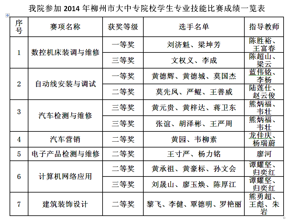 喜讯:我院学生在2014年柳州市大中专院校学生专业技能比赛中获奖